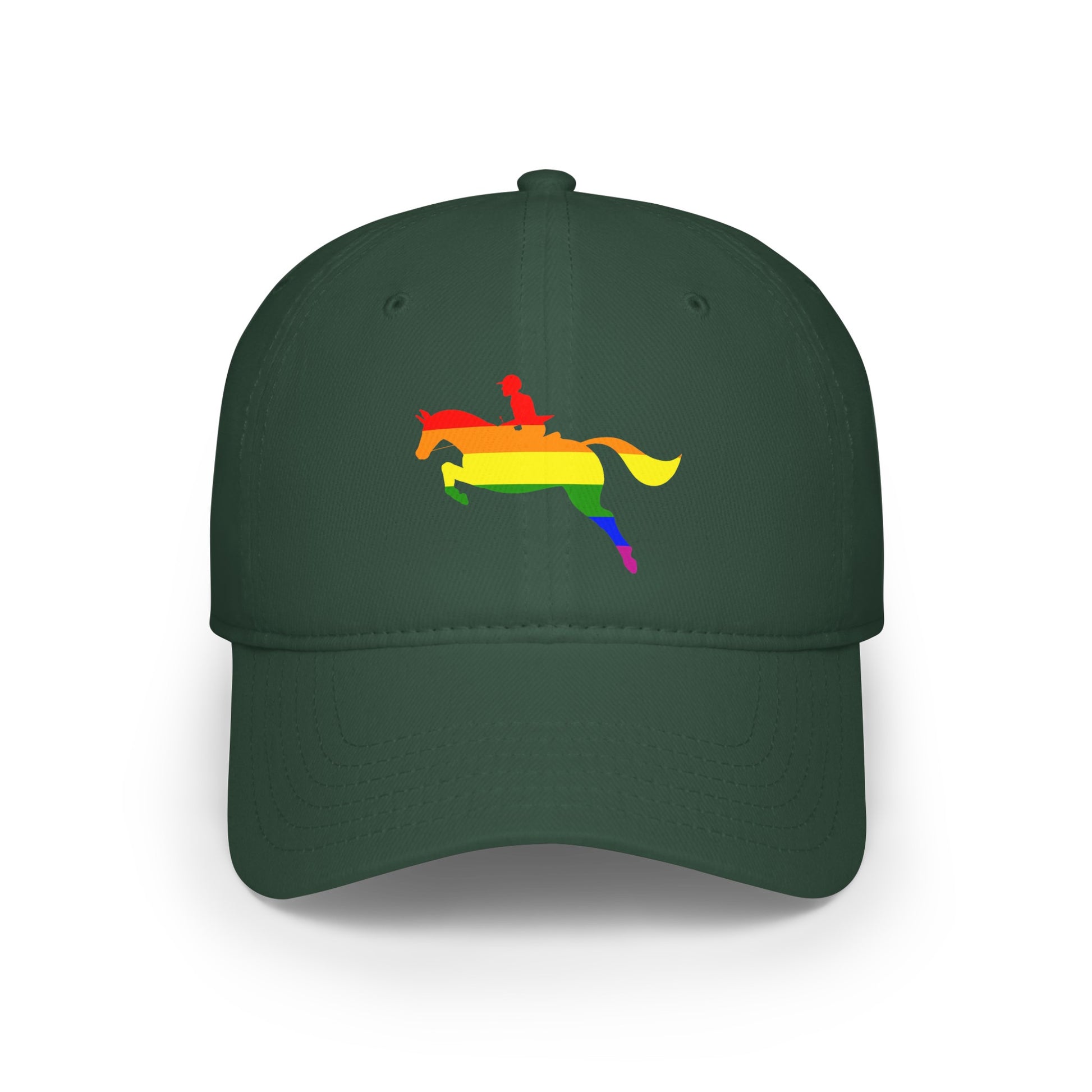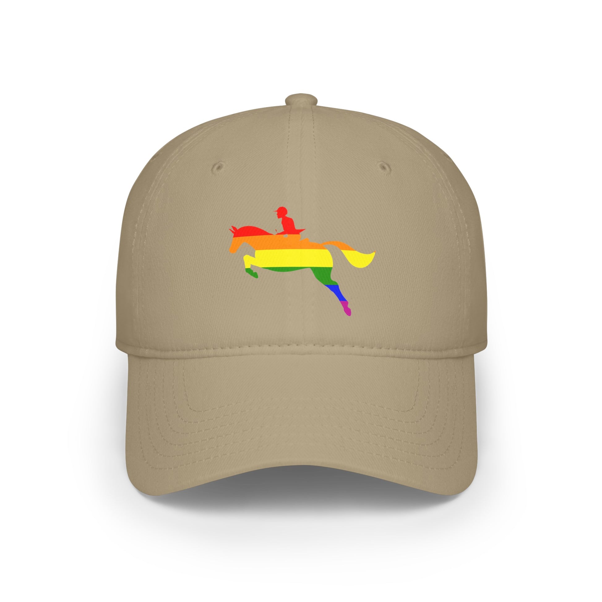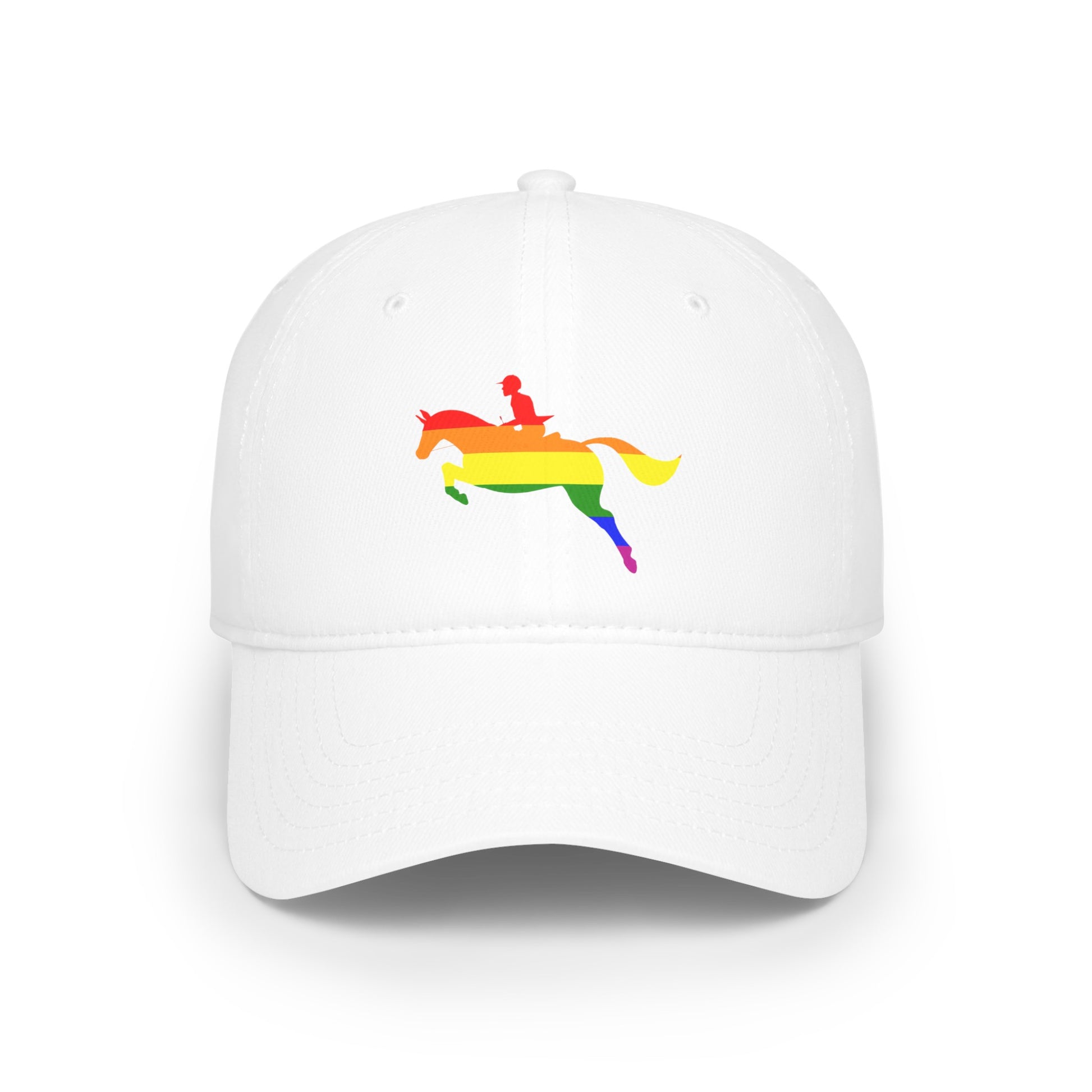 This PRIDE JUMP Baseball Cap is perfect for everyday use, as well as wearing it around the barn. Made from 100% cotton it will be your go-to hat for years to come. Features a buckram lining which ensures a classic shape that lasts. Available in white, black, khaki, dark green, royal, and navy in unisex sizing.