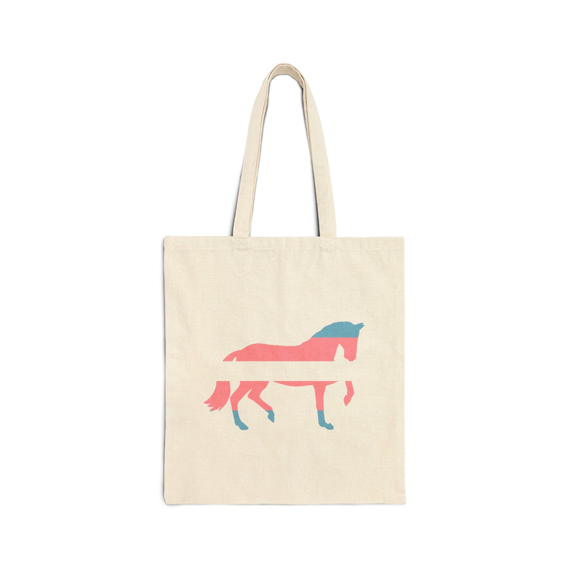 This 100% cotton tote bag comes in one size – 15" x 16"– perfect for everyday use. While the canvas material will show off your trans pride it's also durable and will last for years. The bag features 20" handles (made from the same canvas), making it easy to carry even with a week's worth of shopping or even just treats for your pony!